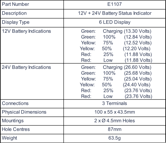 | E1107 12V and 24V Battery Status Indicator |