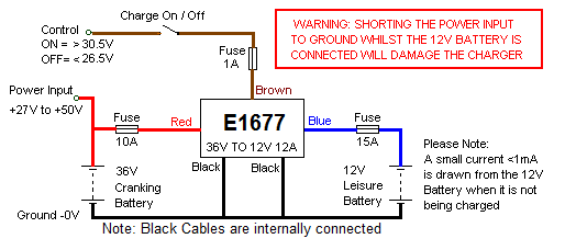 The Brown Control Wire is wired directly to the +ve Connection of the 36V Cranking (Donor) Battery to run the Charger all the time.
